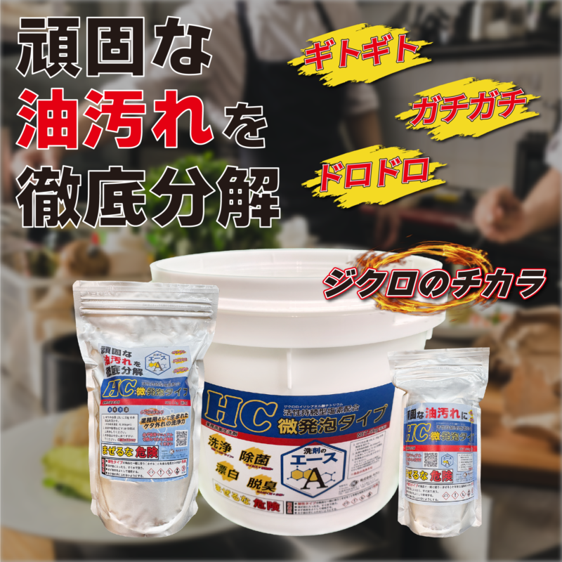 洗剤のエース®HCは、油汚れの原因となるタンパク質を分解し脂質を酸化させベタ付きをサラサラに。