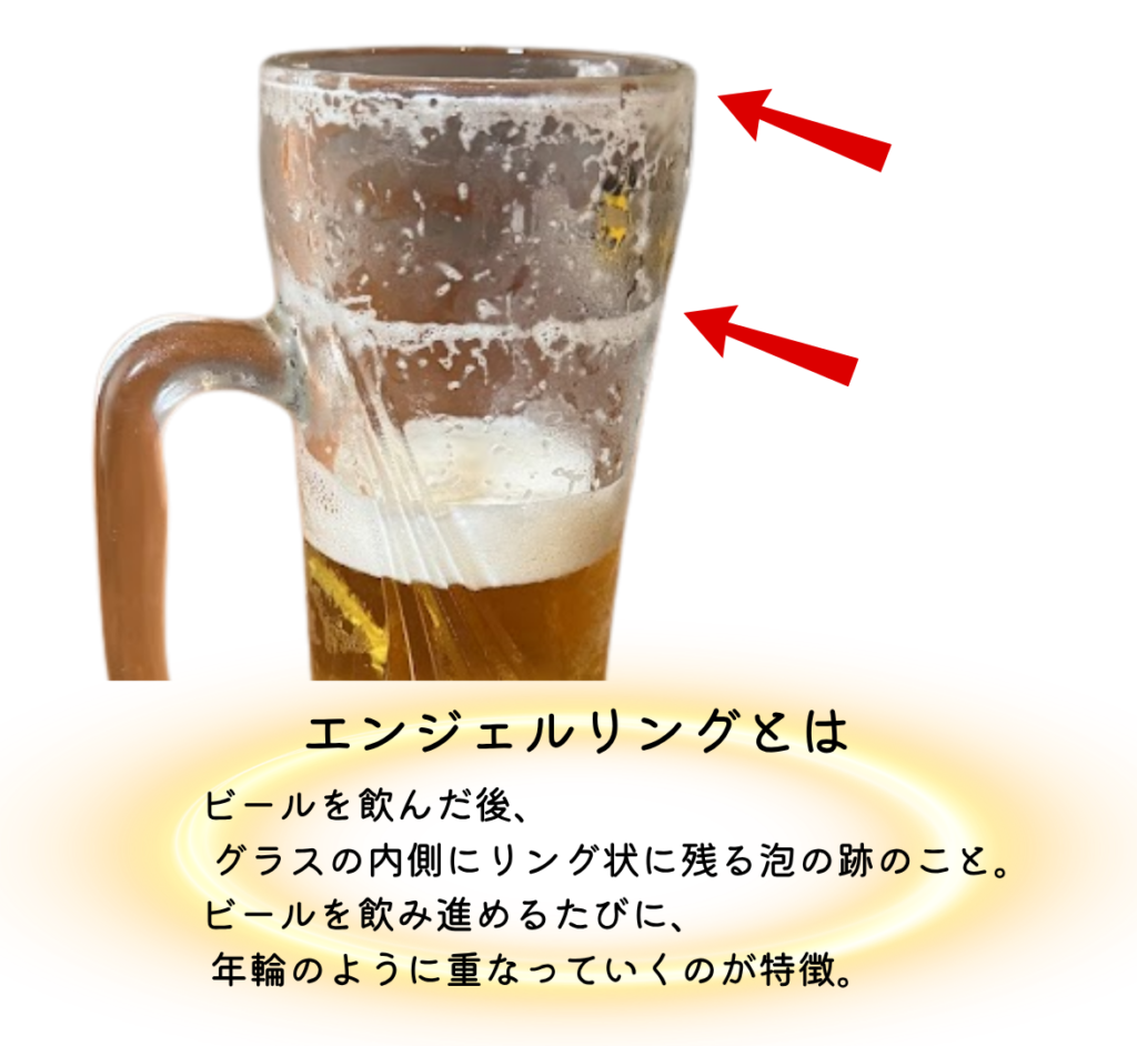 ビールを飲んだあとにグラスに残る、